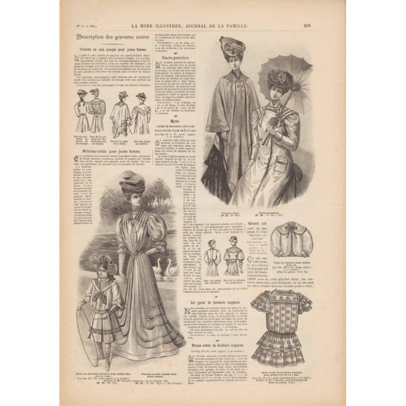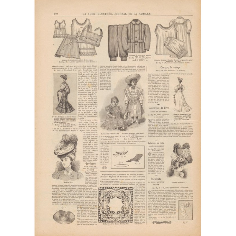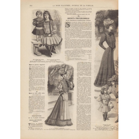 Chaque magazine présentait des modèles de robes , de lingerie , de corsets , mais aussi des vêtements d’enfants ou habits de poupées , avec de magnifiques gravures et les explications des modèles .