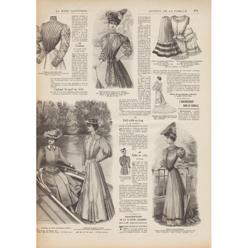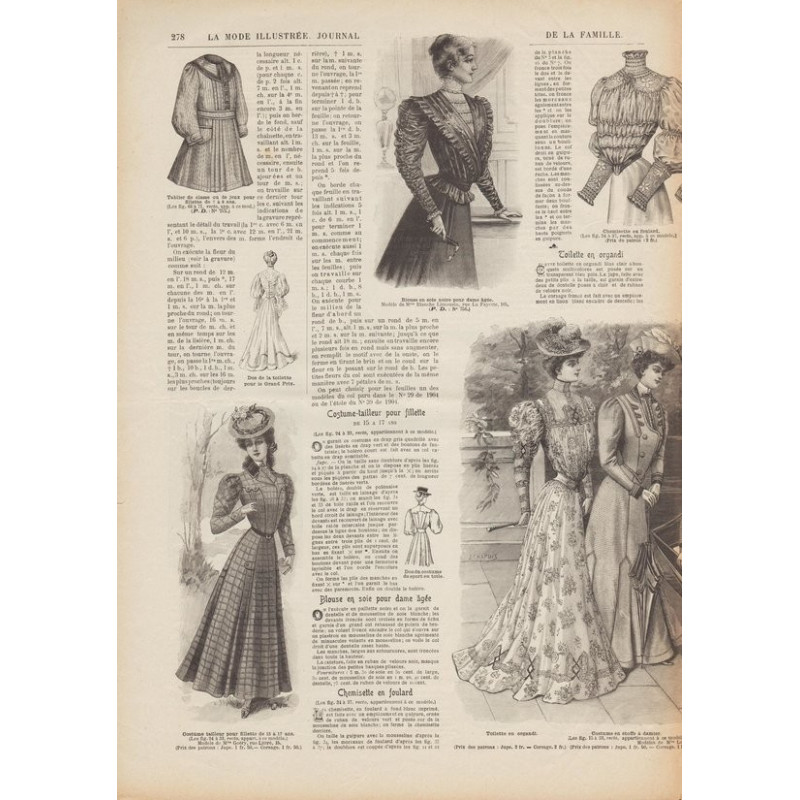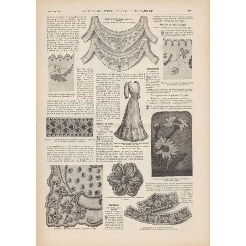 Chaque magazine présentait des modèles de robes , de lingerie , de corsets , mais aussi des vêtements d’enfants ou habits de poupées , avec de magnifiques gravures et les explications des modèles .