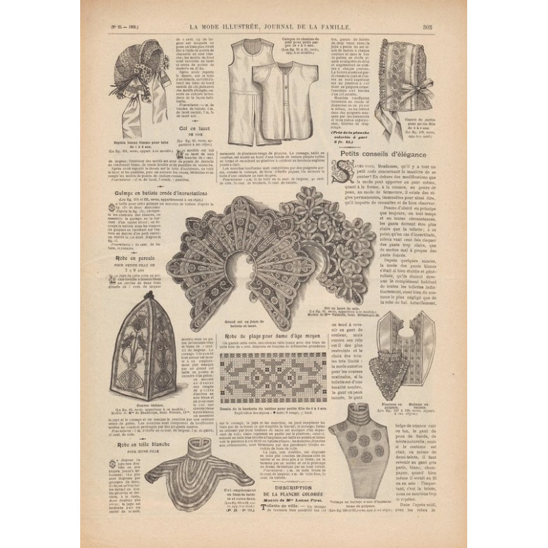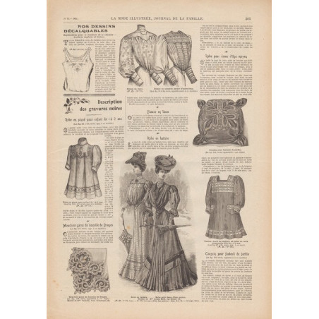 Chaque magazine présentait des modèles de robes , de lingerie , de corsets , mais aussi des vêtements d’enfants ou habits de poupées , avec de magnifiques gravures et les explications des modèles .
