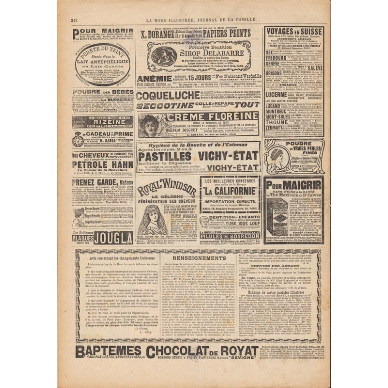 La Mode Illustrée paraissait toutes les semaines, et était accompagnée d’une planche de patrons tous les quinze jours en moyenne.