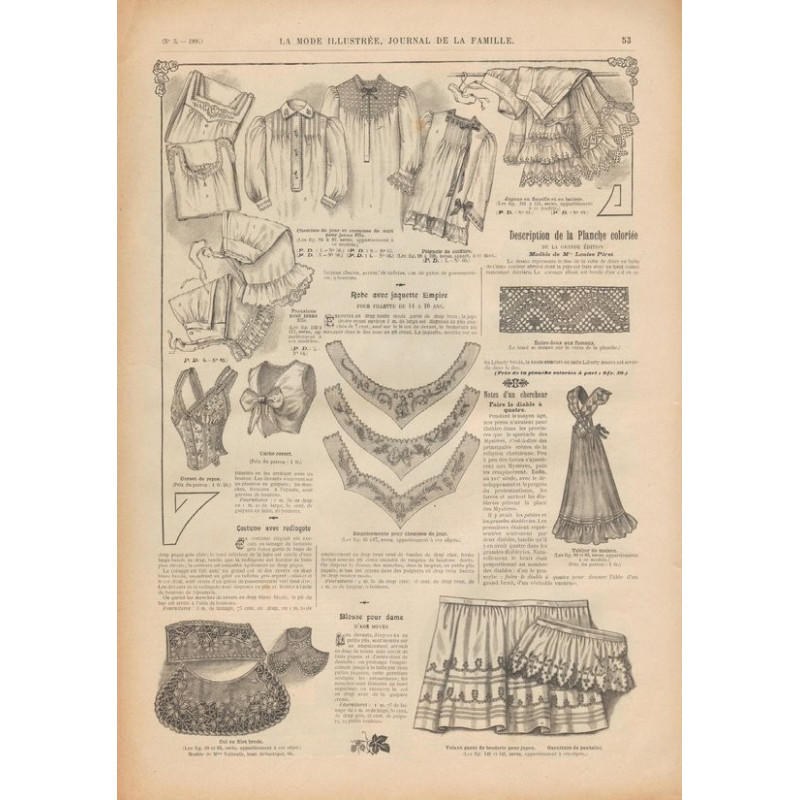 Chaque magazine présentait des modèles de robes , de lingerie , de corsets , mais aussi des vêtements d’enfants ou habits de poupées , avec de magnifiques gravures et les explications des modèles .