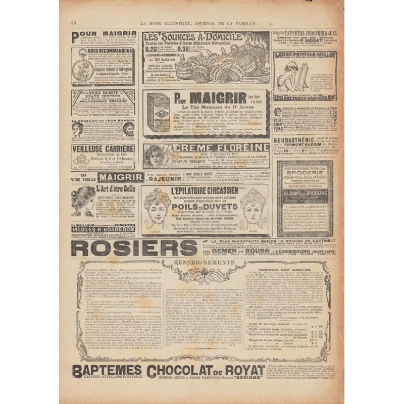 La Mode Illustrée paraissait toutes les semaines, et était accompagnée d’une planche de patrons tous les quinze jours en moyenne.