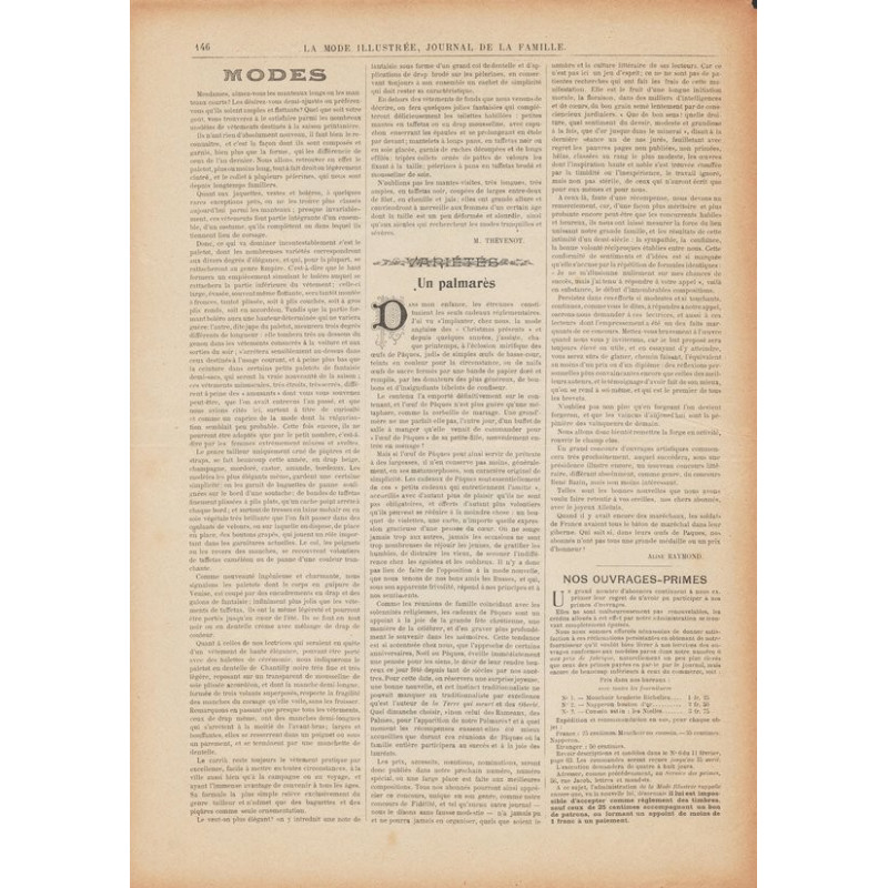 La Mode Illustrée paraissait toutes les semaines, et était accompagnée d’une planche de patrons tous les quinze jours en moyenne.