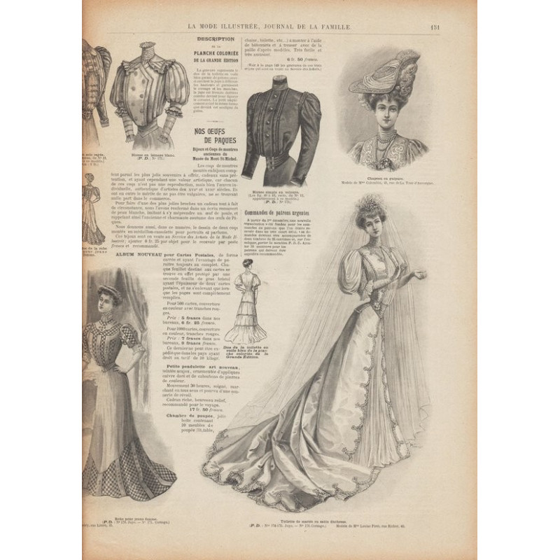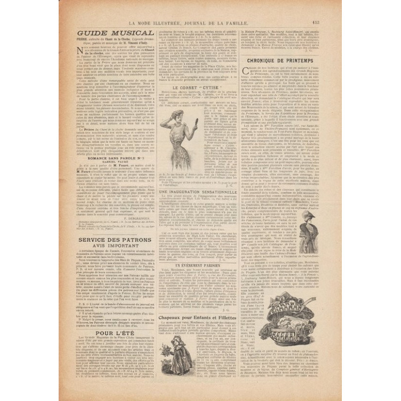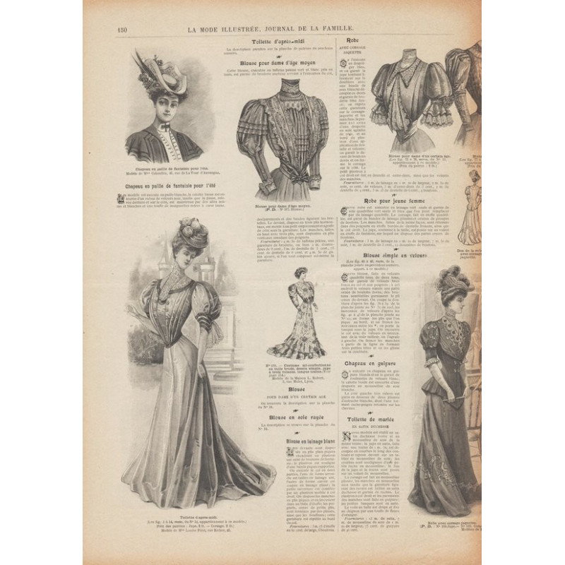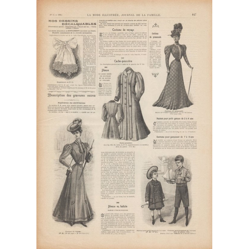 Chaque magazine présentait des modèles de robes , de lingerie , de corsets , mais aussi des vêtements d’enfants ou habits de poupées , avec de magnifiques gravures et les explications des modèles .