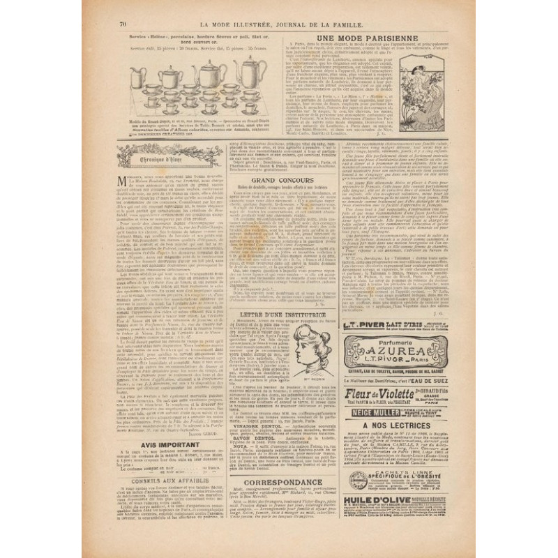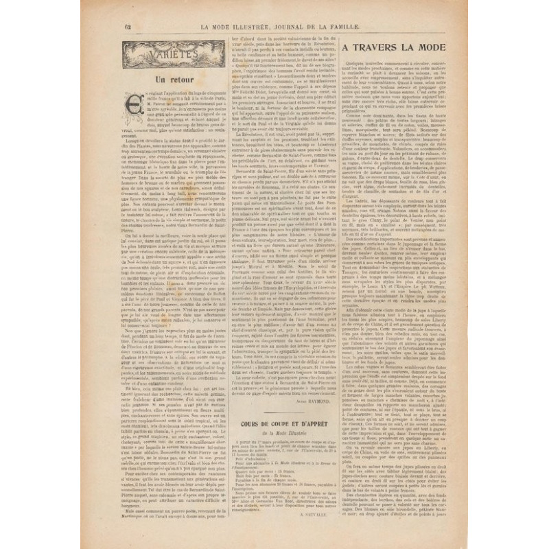 La Mode Illustrée paraissait toutes les semaines, et était accompagnée d’une planche de patrons tous les quinze jours en moyenne.