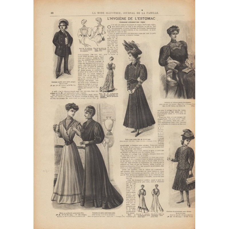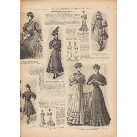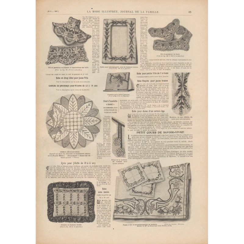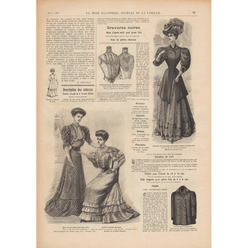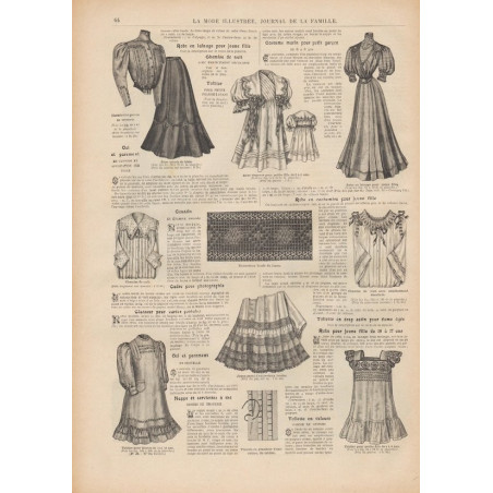 Chaque magazine présentait des modèles de robes , de lingerie , de corsets , mais aussi des vêtements d’enfants ou habits de poupées , avec de magnifiques gravures et les explications des modèles .