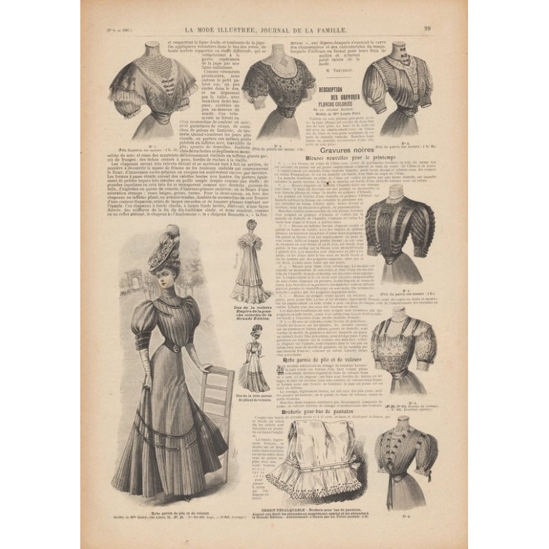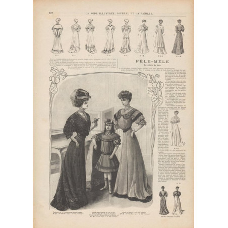 Chaque magazine présentait des modèles de robes , de lingerie , de corsets , mais aussi des vêtements d’enfants ou habits de poupées , avec de magnifiques gravures et les explications des modèles .