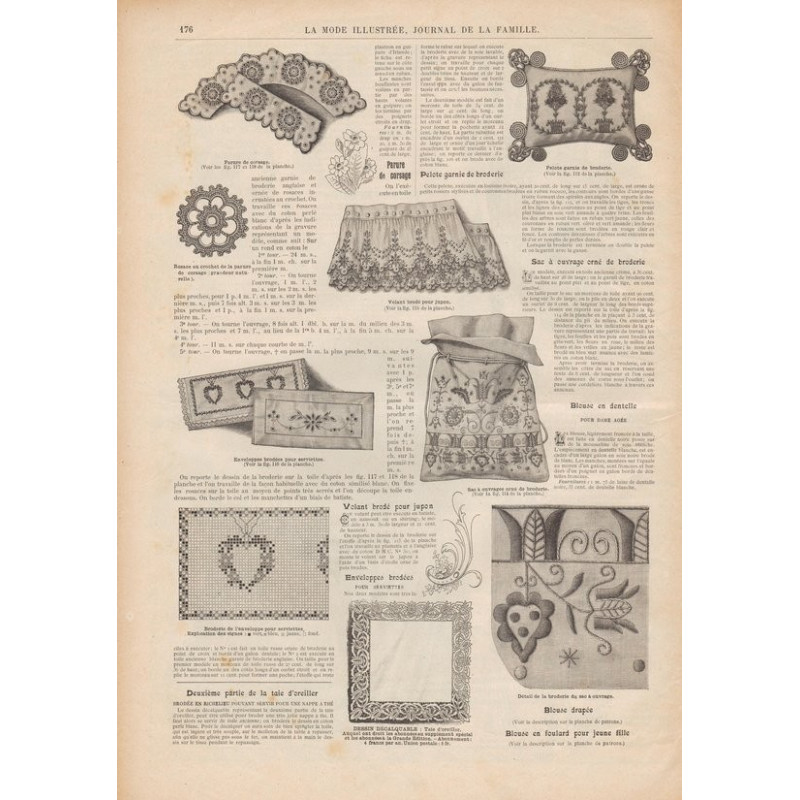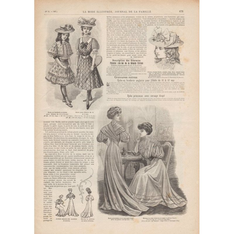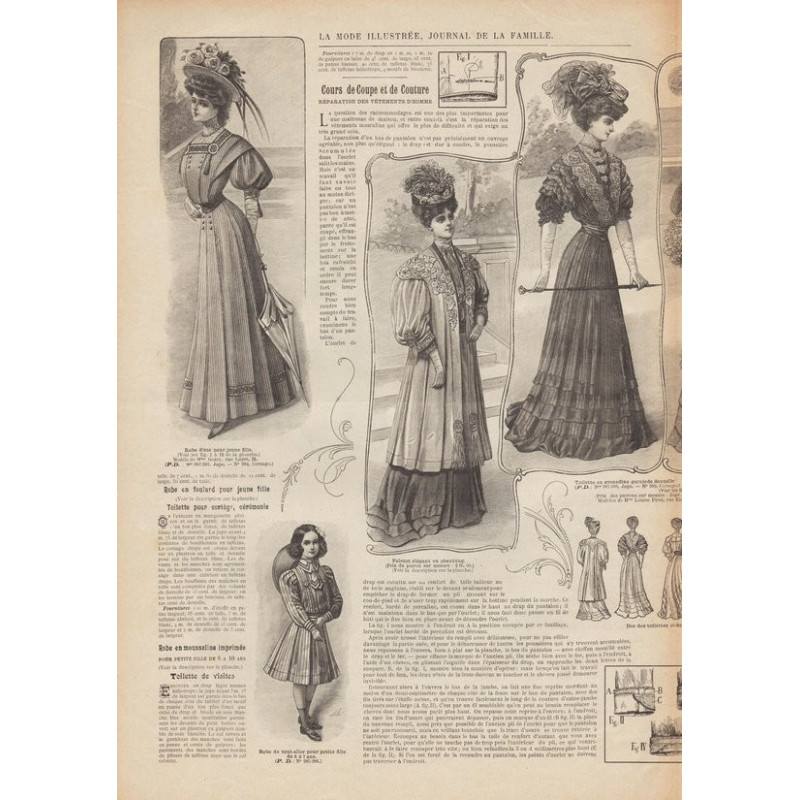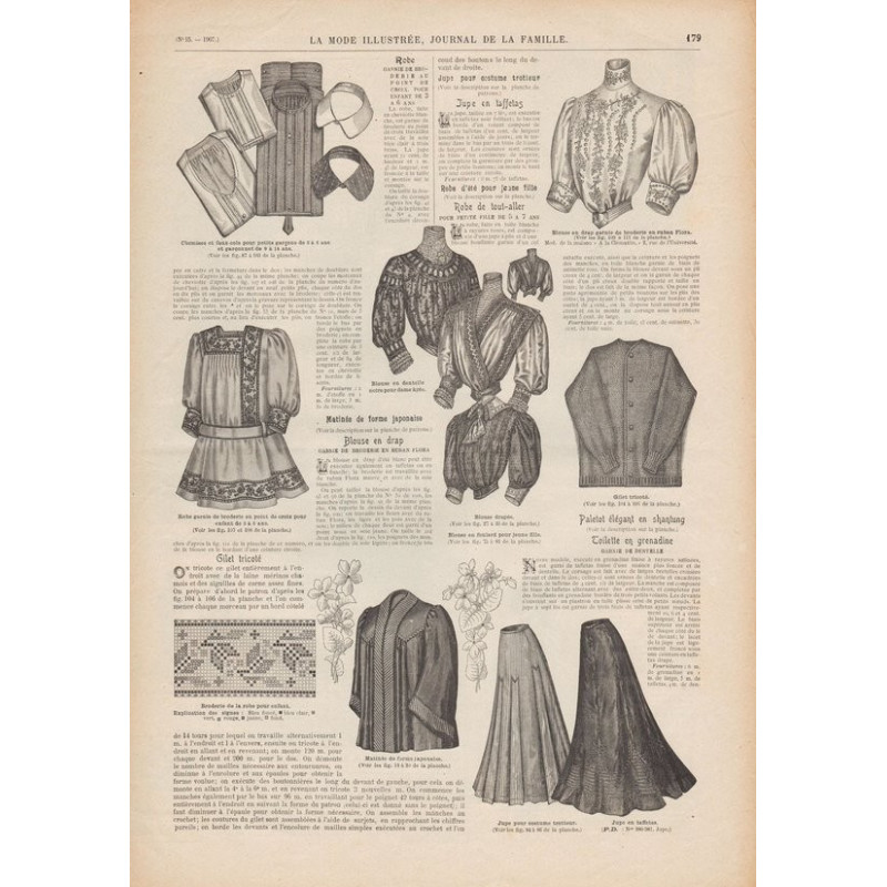 Chaque magazine présentait des modèles de robes , de lingerie , de corsets , mais aussi des vêtements d’enfants ou habits de poupées , avec de magnifiques gravures et les explications des modèles .