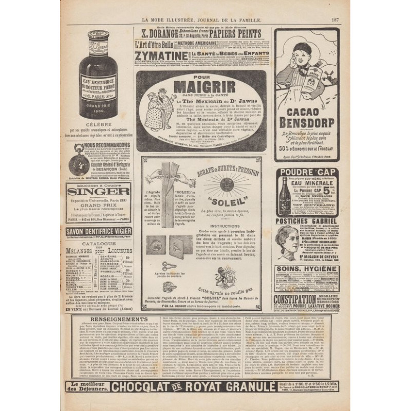 La Mode Illustrée paraissait toutes les semaines, et était accompagnée d’une planche de patrons tous les quinze jours en moyenne.