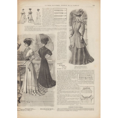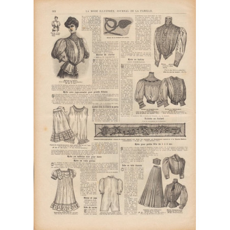 Chaque magazine présentait des modèles de robes , de lingerie , de corsets , mais aussi des vêtements d’enfants ou habits de poupées , avec de magnifiques gravures et les explications des modèles .