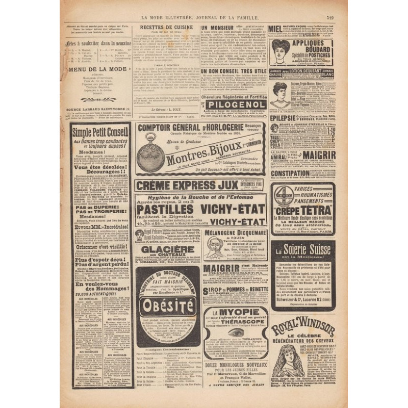 On y trouvait également des articles sur la vie de l’époque ainsi que les premières publicités.