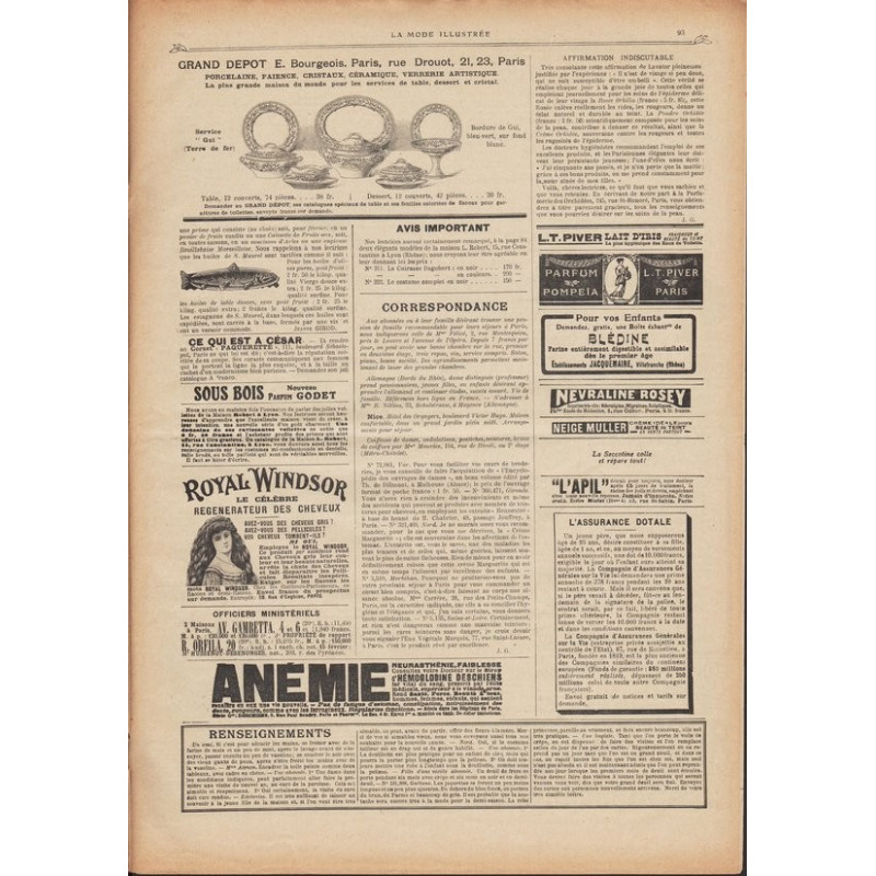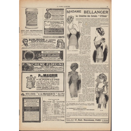 La Mode Illustrée paraissait toutes les semaines, et était accompagnée d’une planche de patrons tous les quinze jours en moyenne.