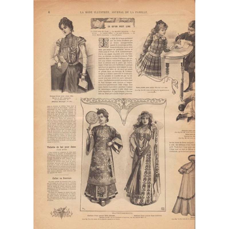 Chaque magazine présentait des modèles de robes , de lingerie , de corsets , mais aussi des vêtements d’enfants ou habits de poupées , avec de magnifiques gravures et les explications des modèles .