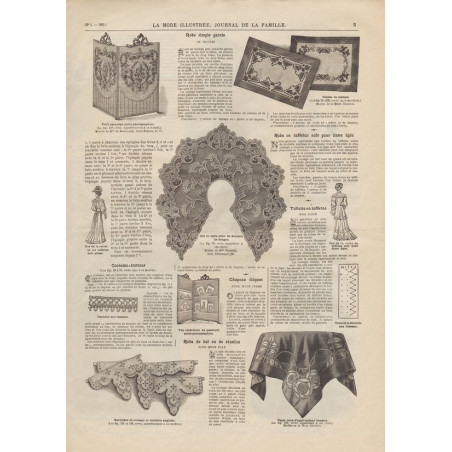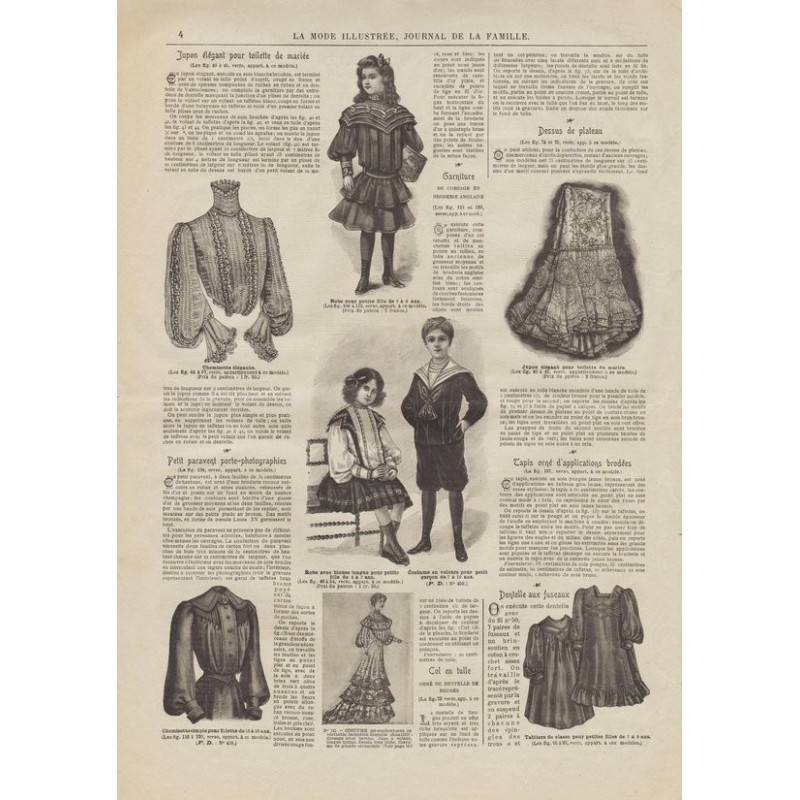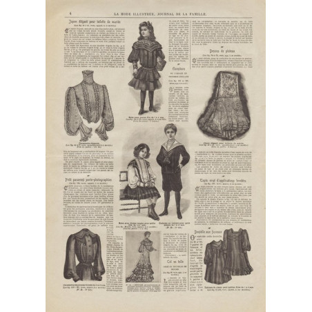 Chaque magazine présentait des modèles de robes , de lingerie , de corsets , mais aussi des vêtements d’enfants ou habits de poupées , avec de magnifiques gravures et les explications des modèles .