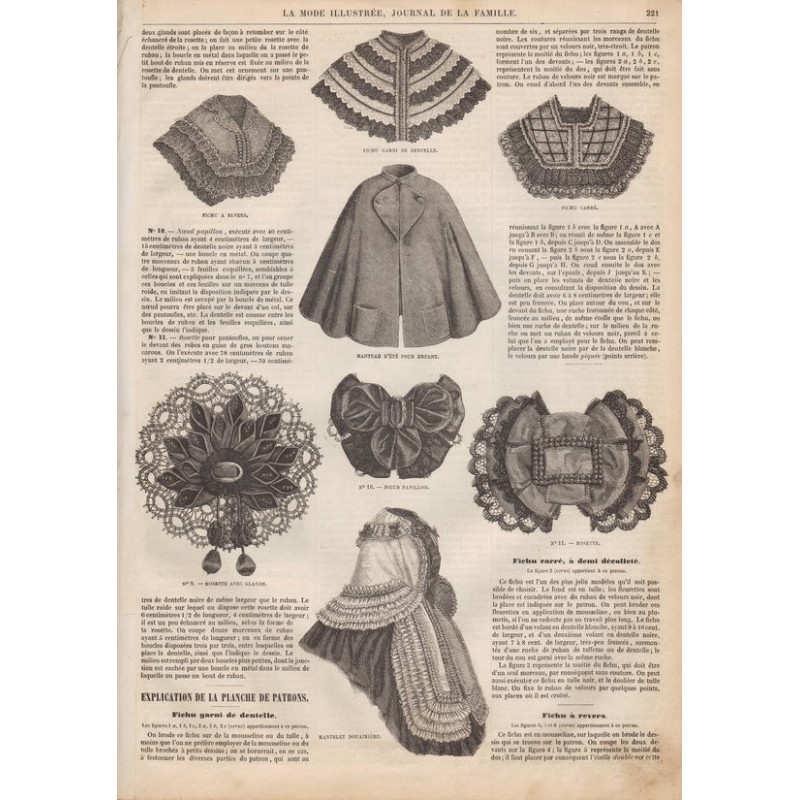 Chaque magazine présentait des modèles de robes , de lingerie , de corsets , mais aussi des vêtements d’enfants ou habits de poupées , avec de magnifiques gravures et les explications des modèles .