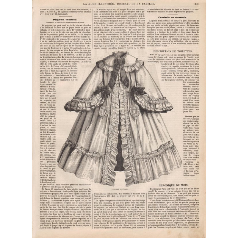 Chaque magazine présentait des modèles de robes , de lingerie , de corsets , mais aussi des vêtements d’enfants ou habits de poupées , avec de magnifiques gravures et les explications des modèles .